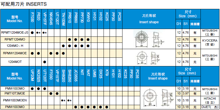 EMR/TPS/EMRW 通用型圓鼻殼形銑刀