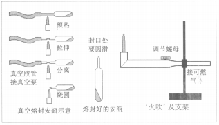 燃氣可使用汽?油汽化氣或煤氣,火焰為藍色。把安瓶插到合適口徑的?真空膠管上,膠管通過一個緩沖容器與真空泵相連,邊?抽真空邊熔封?,熔封處離膠管不能太近?,?以免燒壞膠?管。熔封時要不斷轉動熔封處,不然安瓶熔化處會因大?氣壓力而炸破,當玻璃熔化時邊轉邊拉,最后熔封處互相分離,再把安瓶的熔封處在火焰上燒圓,以防尖刺斷裂而漏氣?,熔封好的安瓶可用高頻火花真空檢測儀測??定安瓶內的真空,發紫紅光真空一般,藍白光真空良好,?注意火花不要打在產品處和熔封處?,否則會損傷產品和使熔封處漏氣。